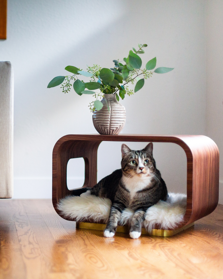 Each piece is handcrafted in the USA from premium materials like White Oak, Walnut and naturally antimicrobial sheepskin. With sculptural lines, cozy enclosures, and sensory-soothing textures, LUNA transforms everyday pet furniture into timeless home accents—offering comfort for cats and style for humans. The result is a harmonious balance of craftsmanship and thoughtful design built to last a lifetime.