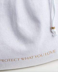 Each dust bag is handmade in small batches using the softest long-staple organic cotton, offering an elegant and practical way to protect larger accessories.