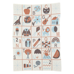 A blanket perfect for any child, ABC by artist Amelie Mancini is a celebration of all the letters of the alphabet. Shapes, animals, and objects are sure to make each character memorable! Knitted in 100% machine washable organic cotton for easy care and comfort.