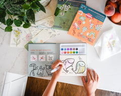 The compact 6x7.5-inch book includes 12 watercolor paints, a water brush, and a paint swatch test card—everything you need to paint anywhere.