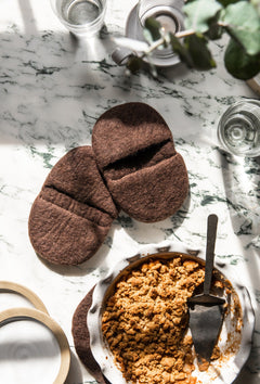 A set of two felt potholders from Farmhouse Pottery. Designed to provide exceptional heat protection while adding artisanal charm to your kitchen.