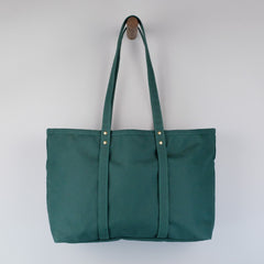 Finished with double-stitched construction, a reinforced bottom, and thick folded handles for comfort, this tote is built to carry everything.