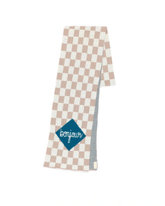 Bring Parisian charm to your home with the Carole Hillman “Bonjour Checkered” Knit Blanket, featuring her iconic checkered scarf design with playful “bonjour” script.