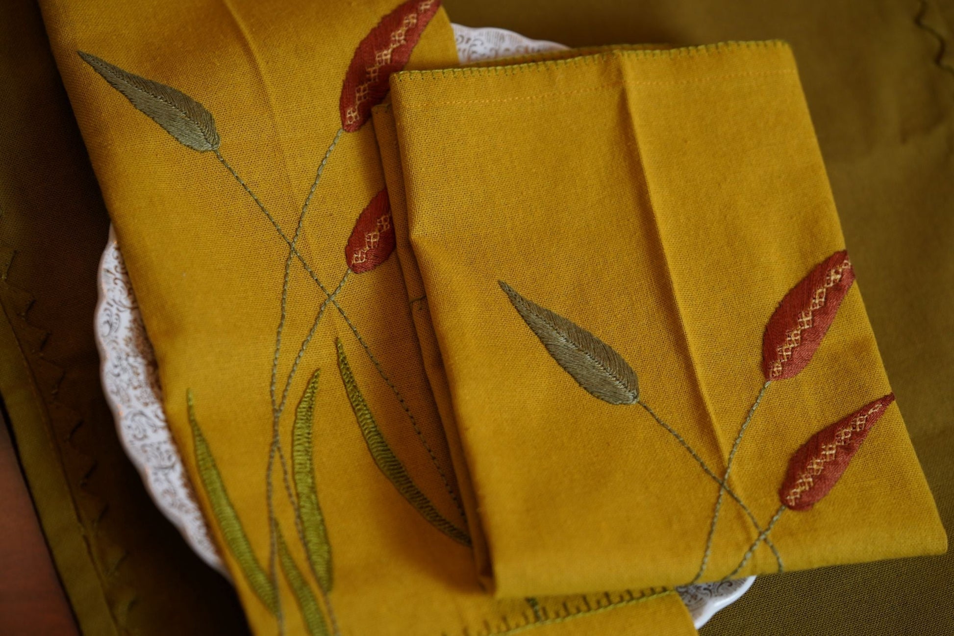 Bring natural elegance and artisan detail to your table with the Botanical Threads Napkins, a curated quartet of hand-embroidered napkins inspired by the quiet beauty of grain fields, grasses, and wildflowers.