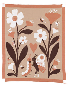 Celebrate pure whimsy with the Holsen Studio “Bug & Butterfly Wedding” Knit Blanket, a joyful storybook scene brought to life in soft Egyptian and organic cotton.
