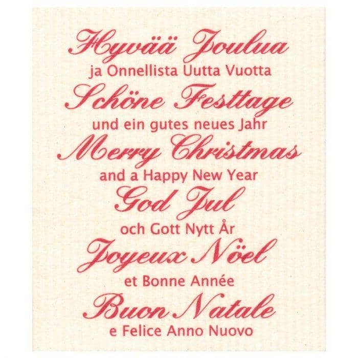 Sweetgum Home’s Set of 3 Christmas Swedish Dishcloths: Glad Tidings from Around the Globe spreads festive cheer and global holiday spirit. Featuring Dala Horses, multilingual greetings, and a Merry Christmas & Happy New Year design, this set is perfect for gifting or brightening your own kitchen.