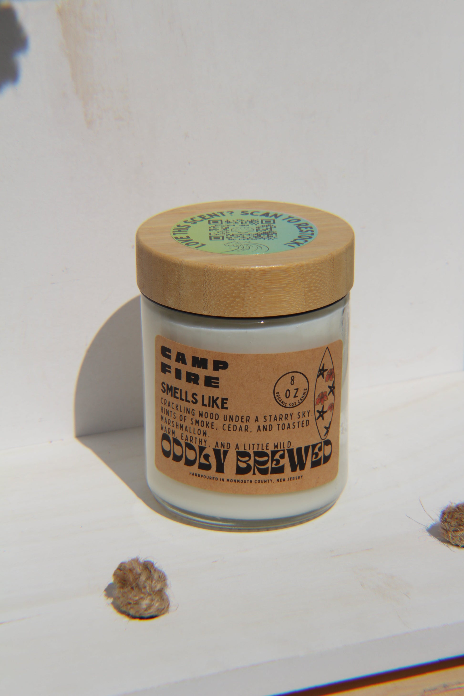 Oddly Brewed crafts all products in small batches using high-quality materials like organic soy wax and glass containers, ensuring every piece is handmade with coastal authenticity.