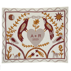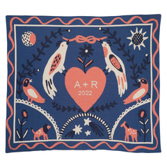 Celebrating unions and connections, Ceremony by artist Amelie Mancini, is all about love. Drawing inspiration from folk art, flora and fauna frame a central heart in togetherness.