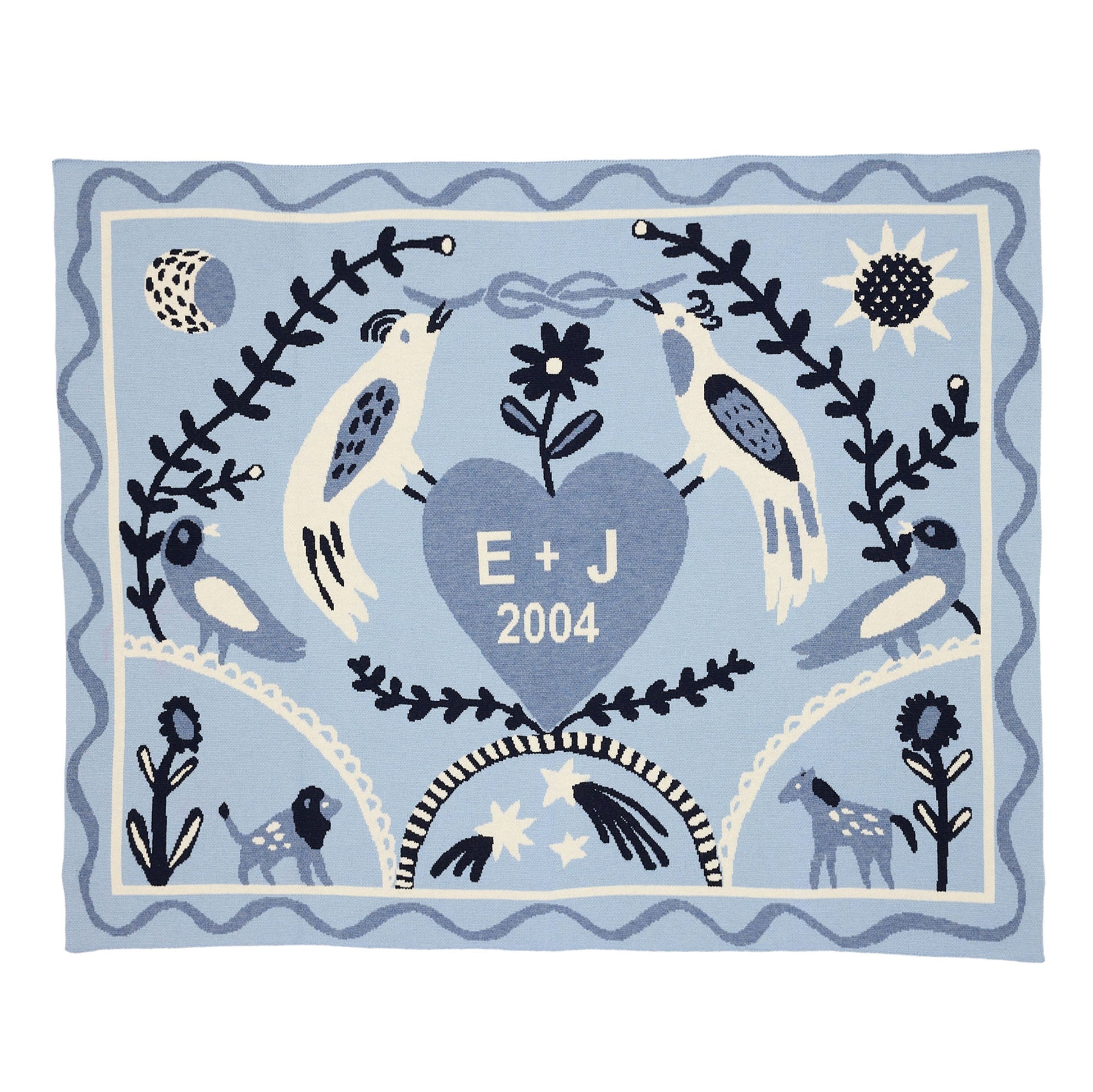 Celebrating unions and connections, Ceremony by artist Amelie Mancini, is all about love. Drawing inspiration from folk art, flora and fauna frame a central heart in togetherness.