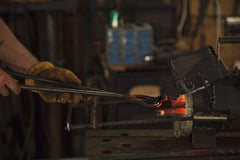 Each rack is individually hand forged using traditional and modern blacksmithing techniques. The flowing leaves and vines are shaped while the metal is red hot, creating a dynamic, organic form. Five sturdy hooks are riveted by hand using copper rivets, adding both strength and a warm accent to the steel.