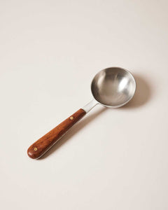 Elevate your morning routine with this elegant Coffee Scoop, featuring a scalloped handle detail and a brushed gold finish. Handcrafted in India from durable stainless steel, it holds 2 tablespoons, making measuring coffee or loose-leaf tea effortless and stylish.