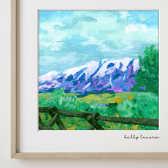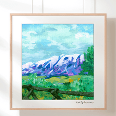 This gouache Colorado Mountains painting is by Texas-based artist Kelly Lenore, now available as a made-to-order fine art print on museum-quality matte paper with archival giclée ink.