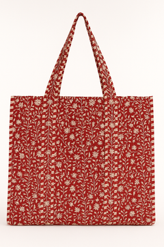 This 100% quilted cotton tote is hand block-printed and features internal pockets—perfect for everyday use or a weekend getaway.