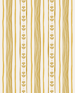 Daisy Chain Stripe Wallpaper, beige and yellow