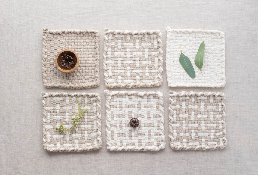 These handwoven pieces from Kate Kilmurray are a practical and elegant addition to any kitchen. Use them as potholders, small coasters to rest your bowls, or simply as decorative kitchen table accents.
