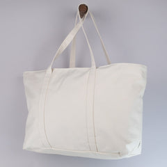 Crafted with durability in mind, this tote features a reinforced bottom, thick folded handles for comfortable carrying, and a secure zippered closure along the top.