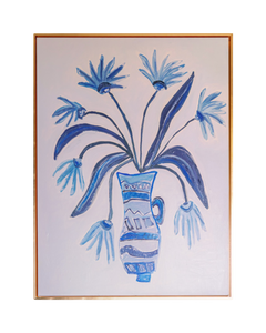 With layered brushstrokes and a tonal palette, the piece brings a sense of calm sophistication—like a still life plucked straight from a French countryside windowsill. Professionally framed in a custom gold float frame, the painting is wired and ready to hang vertically. The artist will sign the front unless otherwise specified.