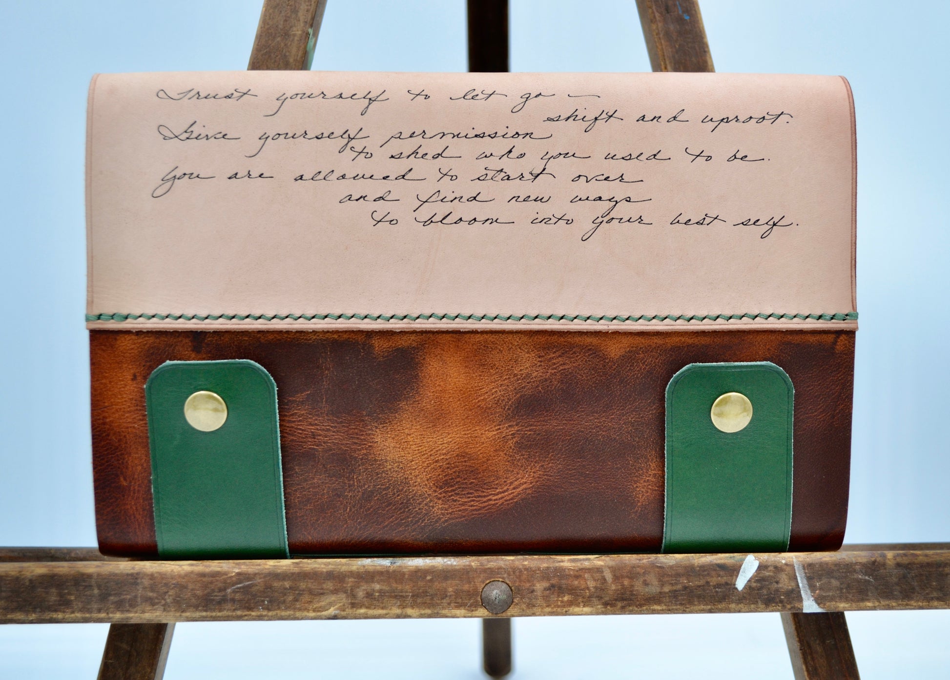 Wrapped in a hand-painted cover and finished with a handwritten quote, each journal is a quiet companion. Made from sustainably sourced leather and 140 lb watercolor paper, they’re a sanctuary for handwriting, sketching, and visual storytelling.