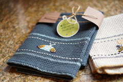 Bring charm, color, and heritage craftsmanship into your kitchen with the Garden Stories Kitchen Towels, a trio of handcrafted waffle-weave towels featuring delicate Lambadi embroidery.