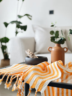 Eastern Woven introduces the Girit Yellow Towel, a perfect balance of simplicity, durability, and vibrant style. Woven on traditional semi-automatic looms in Turkey, this towel is crafted from a sustainable blend of cotton and linen fibers.