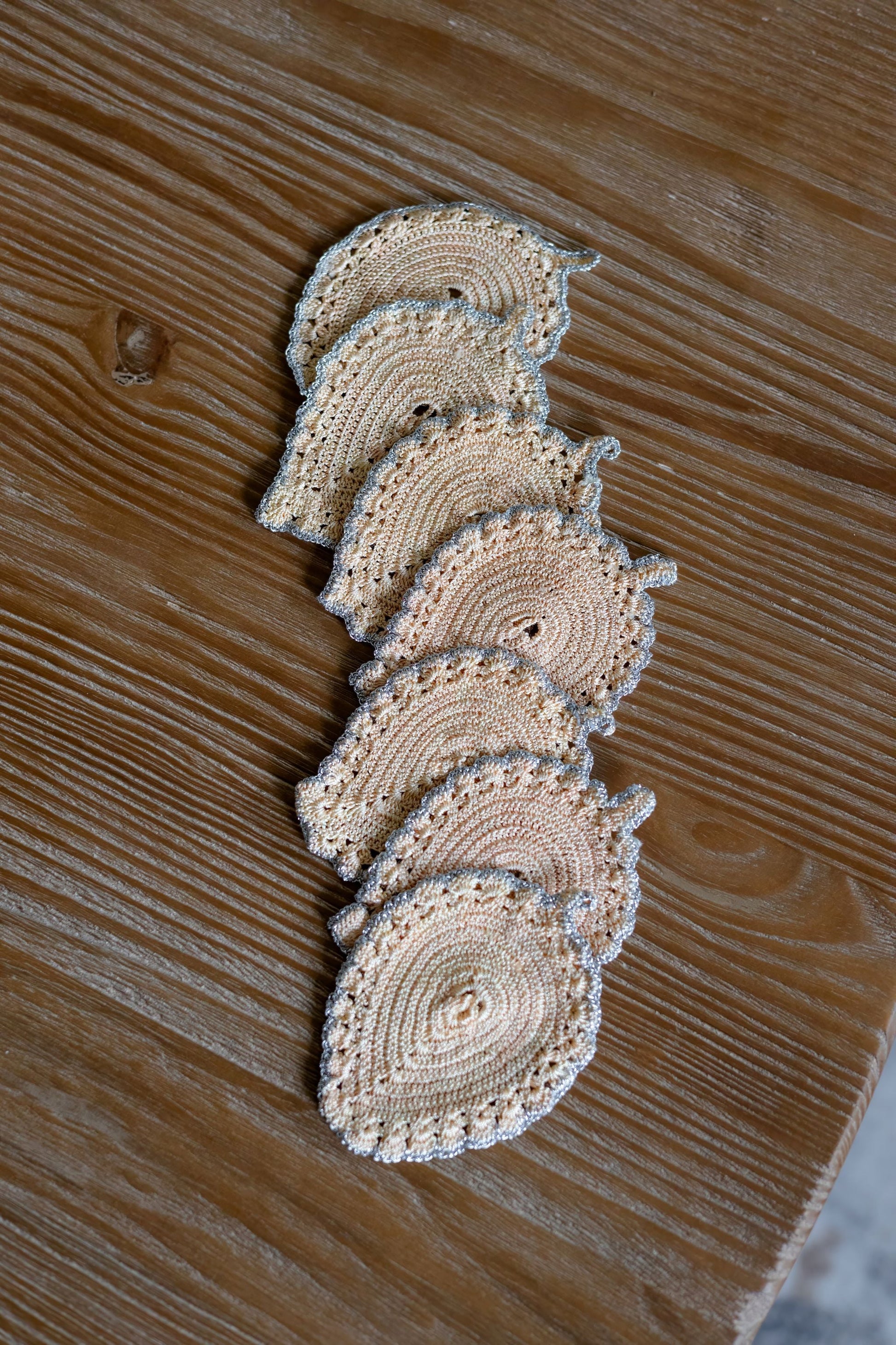 Made with eco-friendly 'Zari' (metallic) and 'Viscose' threads, these hand-crocheted coasters are a perfect way to keep your surfaces free from stains and scratches. Meticulously crafted by women artisans from Gaya (Eastern India), they offer both functionality and strong aesthetic appeal.