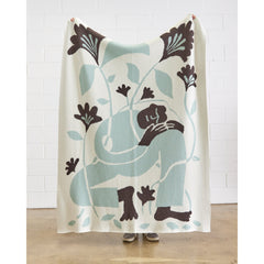 Grow, designed by artist Charlotte Ager, is perfectly peaceful. Held by flowing flowers, the large scale figurative image is thoughtful and quiet, a great companion to a warm cup of tea. Knitted in soft and sustainable 100% Organic Cotton.