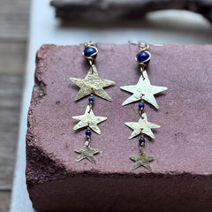 Hammered Brass Star and Lapis Earrings