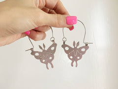 Add a touch of natural whimsy to your look with these Handmade Luna Moth Hoop Earrings by Adriana Soto. Each delicate moth is hand-drawn, hand-cut, and lightly hammered to create a texture that glimmers with every movement.