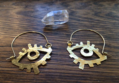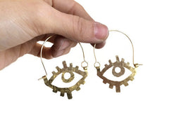 Adriana Soto’s Hand-Cut Metal Eye Hoop Earrings bring a touch of whimsy and artistry to any look. Each pair features hand-drawn and hammered metal eyes crafted from your choice of copper, brass, or aluminum.