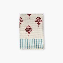 Made from absorbent organic cotton with a soft waffle texture, these hand-block printed towels in rich red dahlia tones bring warmth, charm, and everyday functionality to modern kitchens.