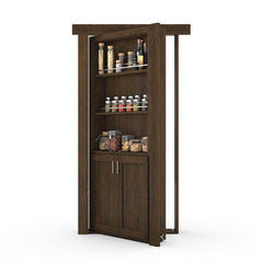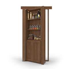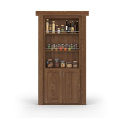 Maximize pantry storage with this hidden Oak Spice Rack Door. Features adjustable spice rack shelves and standard shelving for functional kitchen storage. Pre-assembled and pre-hung for easy installation.