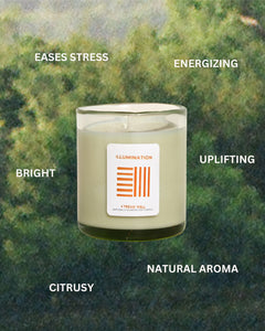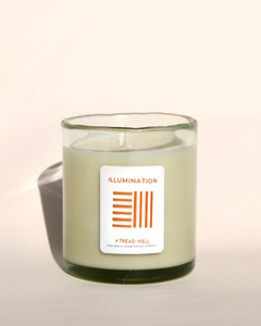 Immerse yourself in the radiant glow of the Tread Well Illumination Candle. Hand-poured with a vibrant blend of lemongrass and citrus essential oils and nestled within a uniquely crafted, hand-blown glass vessel. This soy wax candle gently elevates your ambiance with a bright, uplifting aroma.