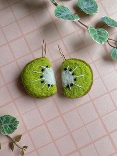 These needle-felted Kiwi Earrings bring a playful, fruity touch to any outfit, perfect for fruit lovers or anyone looking to brighten their look. Handmade from soft Merino wool, they are lightweight, comfortable, and designed to make a cheerful statement.