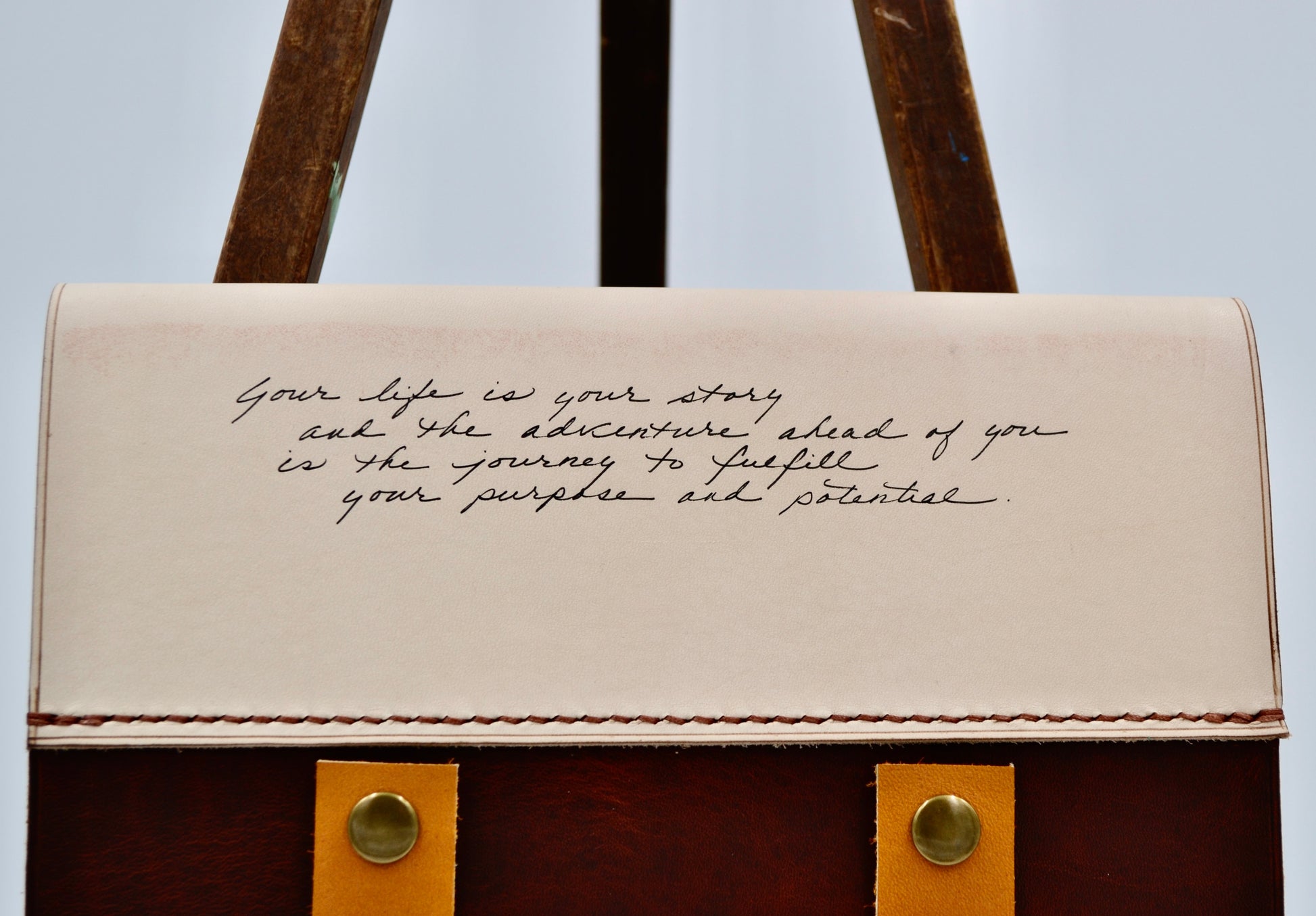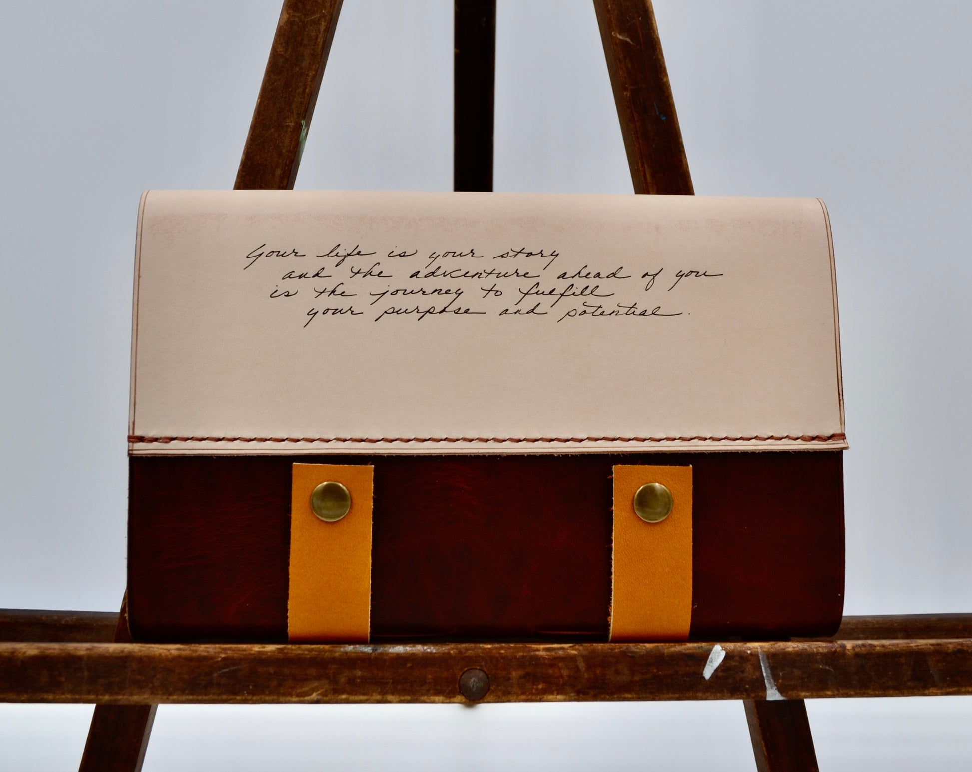Wrapped in a hand-painted cover and finished with a handwritten quote, each journal is a quiet companion. Made from sustainably sourced leather and 140 lb watercolor paper, they’re a sanctuary for handwriting, sketching, and visual storytelling.