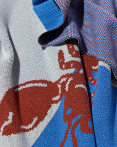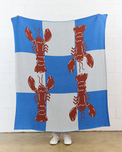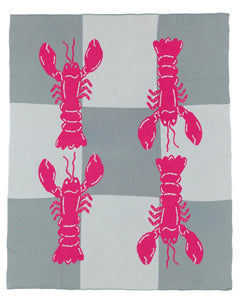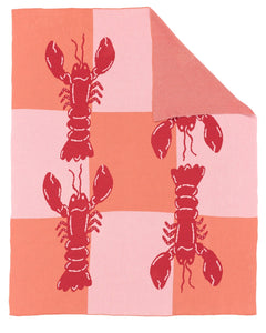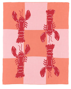 Bring coastal charm to your home with the Maddison Ball “Lobster Checkerboard” Knit Blanket, featuring four playful lobsters against a bold checkerboard pattern.