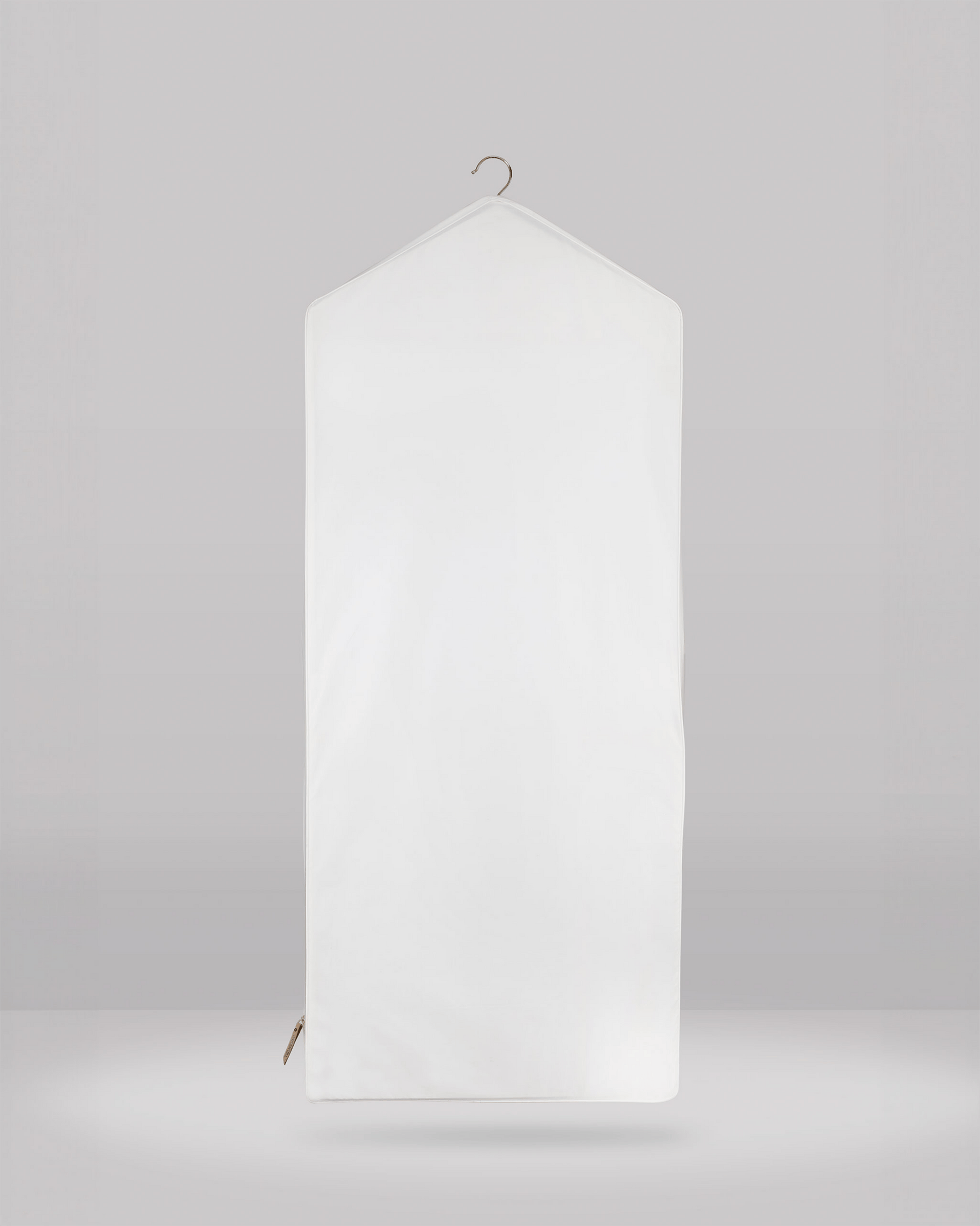 Each garment storage bag is handmade in small batches using the softest long-staple organic cotton, offering a luxurious and practical way to protect full-length garments.