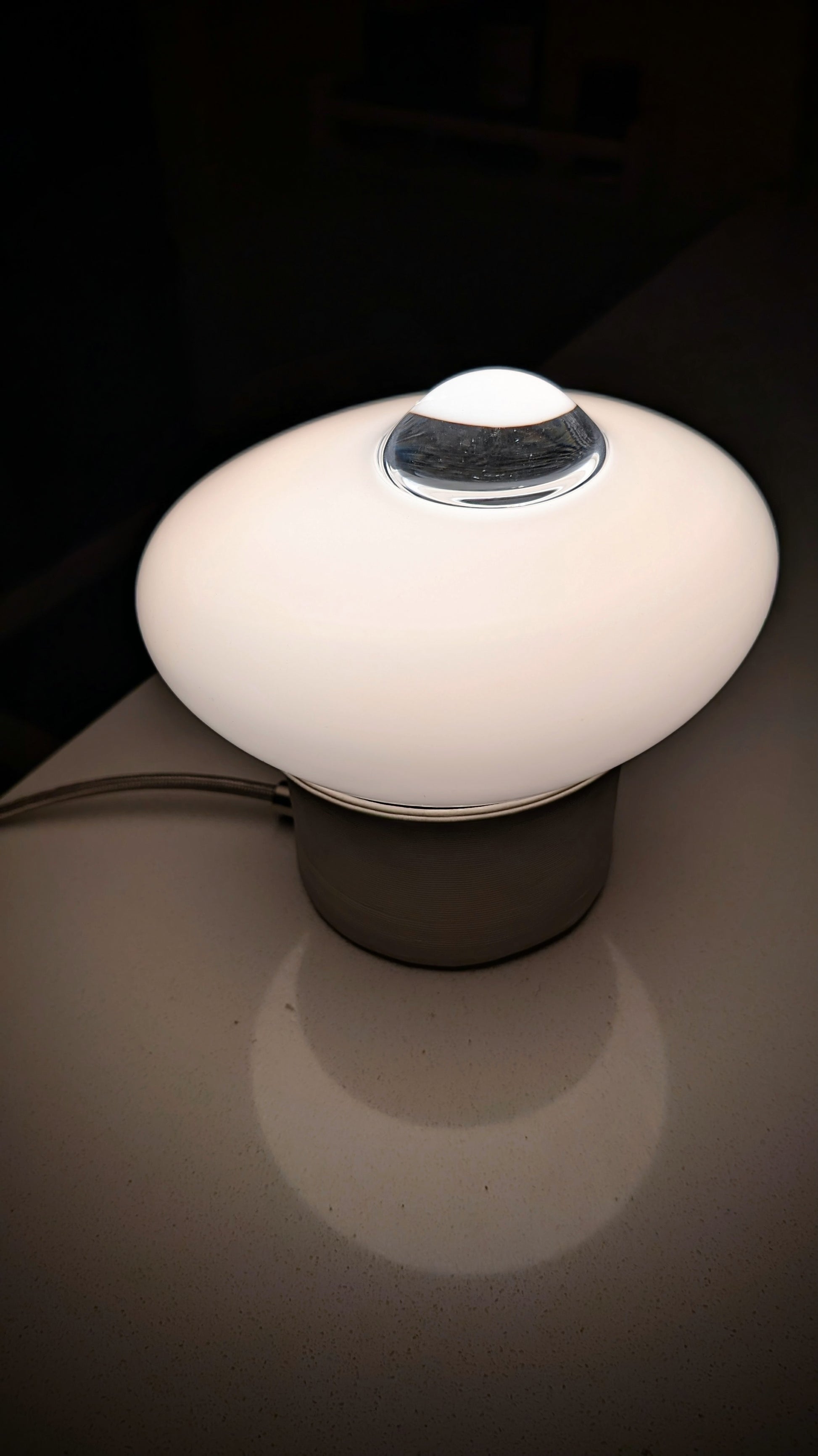 The Loupe Lamps are designer-grade handmade table lamps in ivory white feature unique, soft, amorphous forms—reaching and peering through crystal lenses that emit a warm, ambient glow.