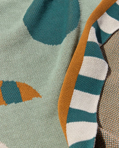 Biquette’s Lovebirds Blanket captures whimsical warmth with two seagulls beneath a glowing sun.