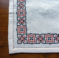 The Luiza folk embroidery kit features a stunning border design from the Carpathian Mountains in Romania, a region celebrated for its rich folk embroidery traditions. Worked in classic black and red, this design is quick to stitch and creates a beautiful basket cloth for your home or as a thoughtful gift.