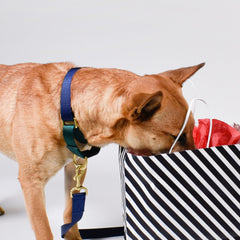Sturdy nylon webbing and brass hardware make a fashionable duo in the classic martingale style collar.