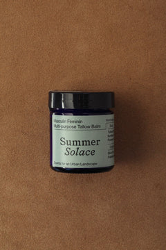 Masculin Féminin is a unisex, herbaceous, and woodsy balm crafted to honor balance, resilience, and the sacred union of tradition and daily care. As the original formula in the Summer Solace Regenerative Tallow® collection, this balm carries the vision of founder Megan Bre Camp—blending sacred plant aromatics with ancestral fats to create a nourishing, grounding skincare ritual for all.