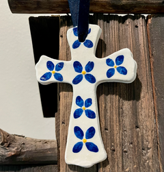 Each of these cross ornaments boasts unique variations in their underglaze and are meticulously hand-painted, making them an ideal choice for your home or as a unique holiday gift.