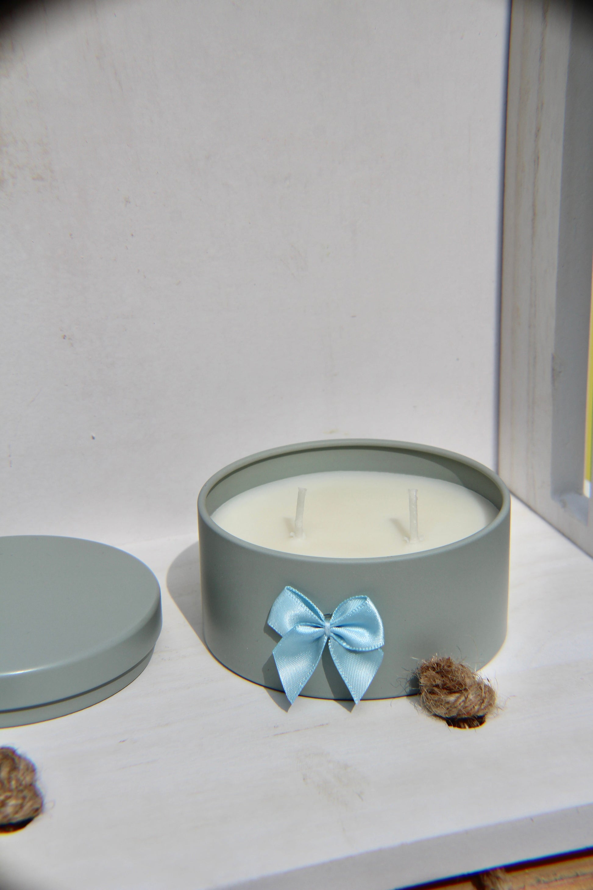 Each 5 ounce tin includes double cotton wicks for a longer-lasting burn and comes with the option of a bow or label. Plus, the bottom of each candle is labeled with scent and safety information. Experience a cozy summer atmosphere with every burn.