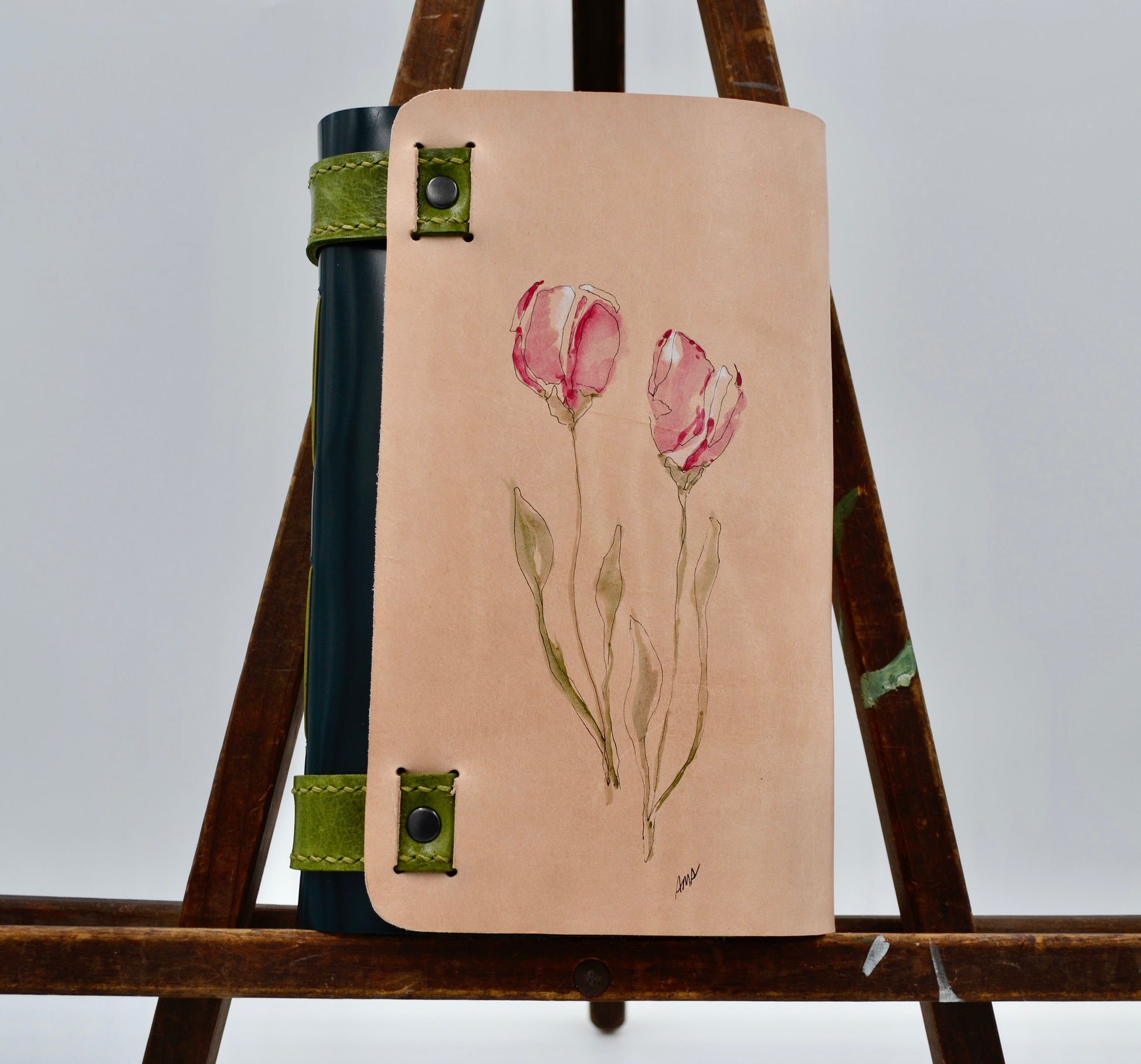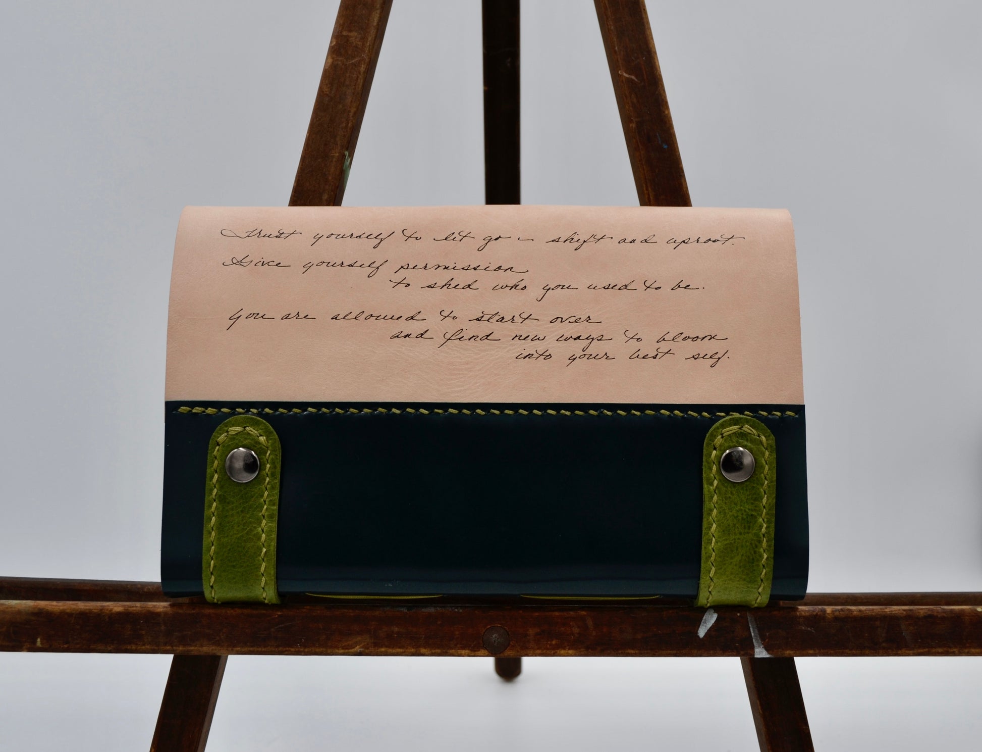 Wrapped in a hand-painted cover and finished with a handwritten quote, each journal is a quiet companion. Made from sustainably sourced leather and 140 lb watercolor paper, they’re a sanctuary for handwriting, sketching, and visual storytelling.