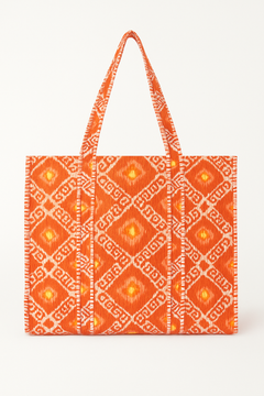 This 100% quilted cotton tote is hand block-printed and features internal pockets—perfect for everyday use or a weekend getaway.