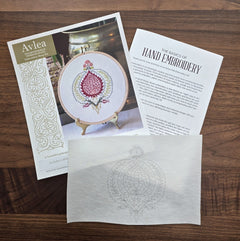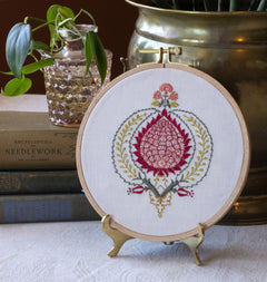 Celebrated across Mediterranean textiles as a symbol of abundance, life, and beauty, the pomegranate has inspired artisans for centuries. The Peloponnesian Pomegranate Stick-and-Stitch design draws from a 15th-century woven silk brocade, bringing this historic motif into a modern embroidery project.