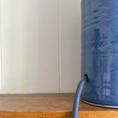 The Pillar Lamp is VESSEL's modern take on a living room essential. A large, dimmable incandescent light bulb sits atop a hand thrown ceramic base. Turn the brass knob to dim the warm light to your preference.
