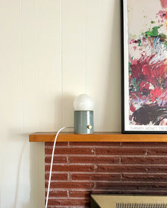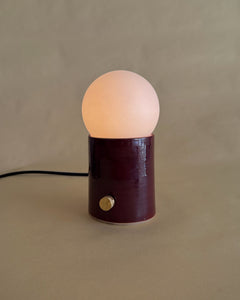 The Pillar Lamp is VESSEL's modern take on a living room essential. A large, dimmable LED light bulb sits atop a hand thrown ceramic base. Turn the brass knob to dim the warm light to your preference.