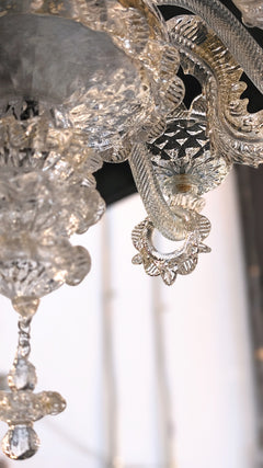 Each piece features twisted crystal glass trails delicately wrapped in pinched-petal details—a sculptural touch of timeless elegance.