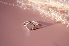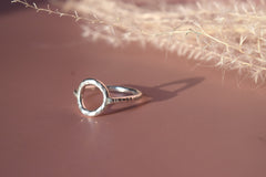 Every ring is made with 100% certified recycled sterling silver and hammered by hand; the band mimicking stately trees supporting the flowing river texture moving around in the circle.